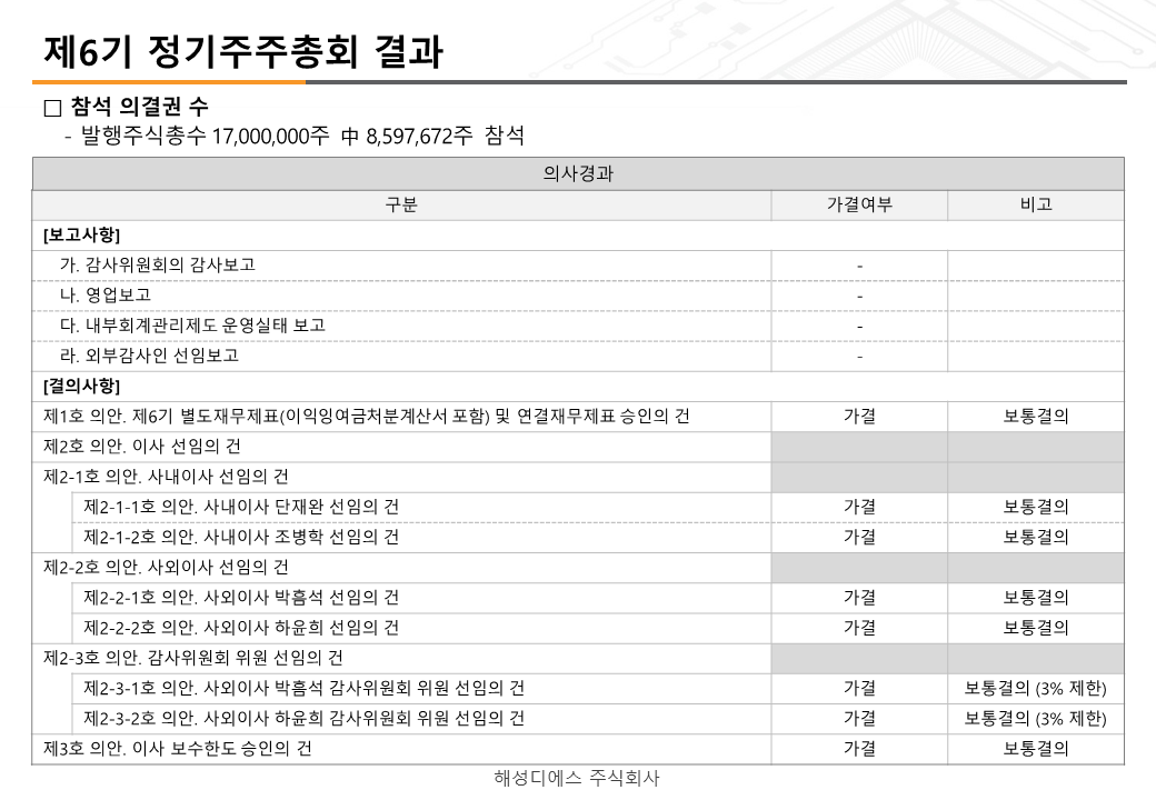 제6기 정기주주총회 결과 공고