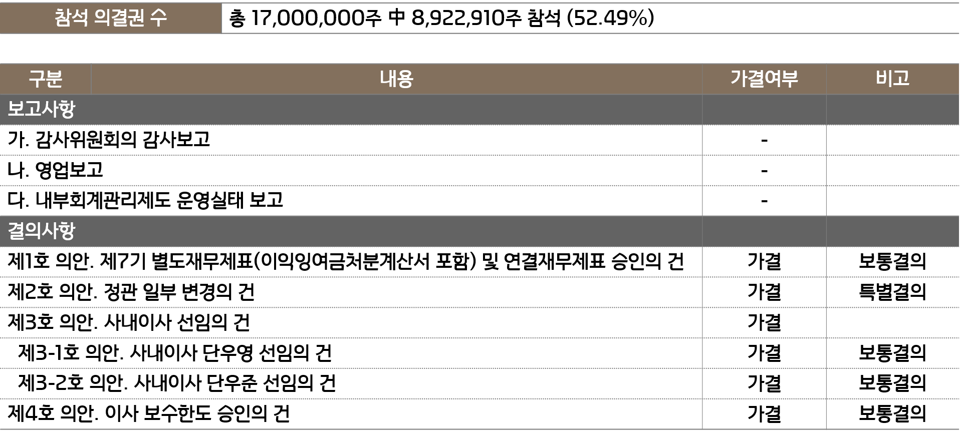 제7기 정기주주총회 결과 공고