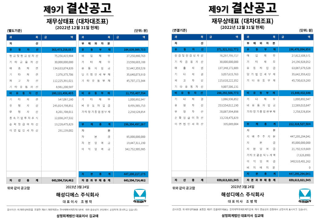 제9기 결산공고